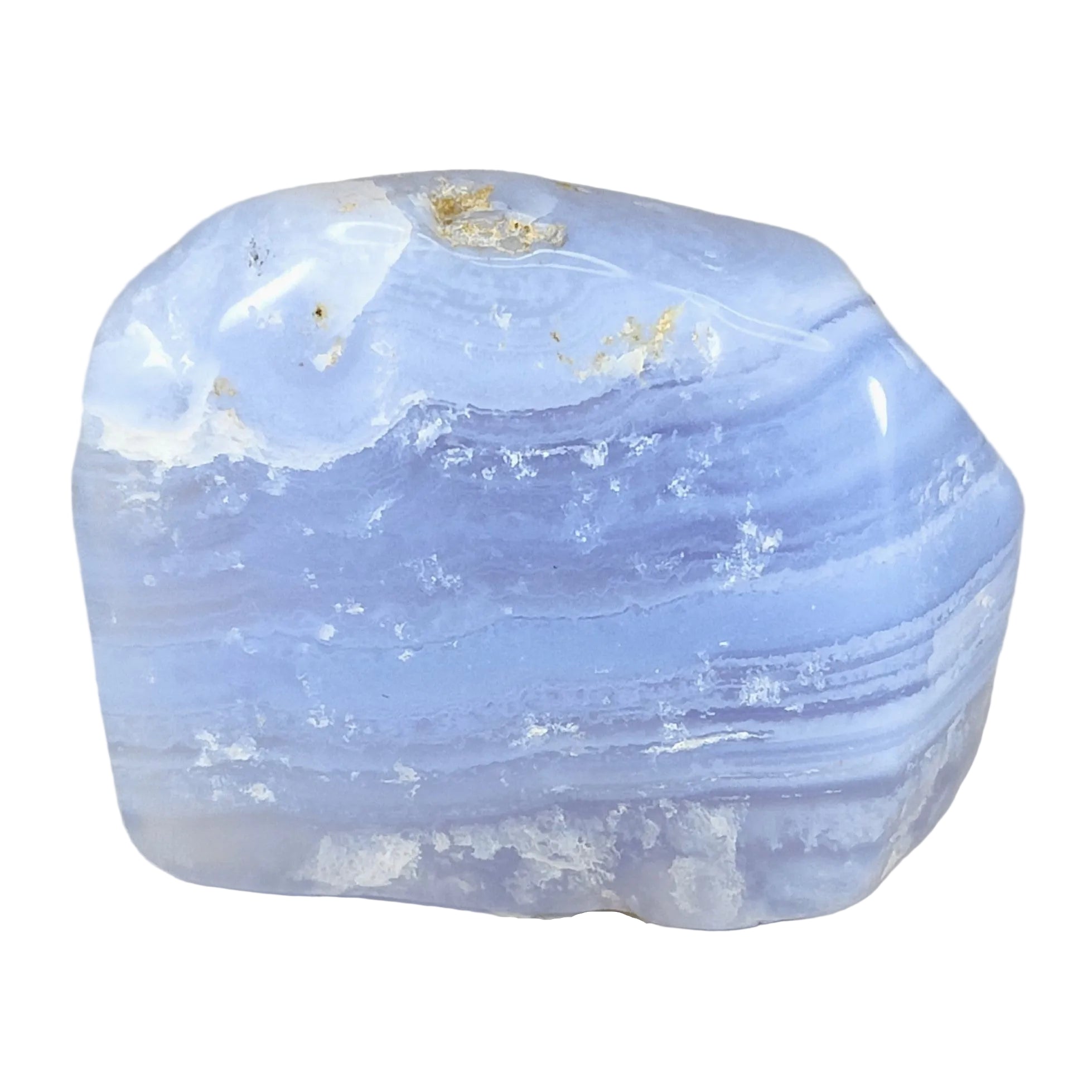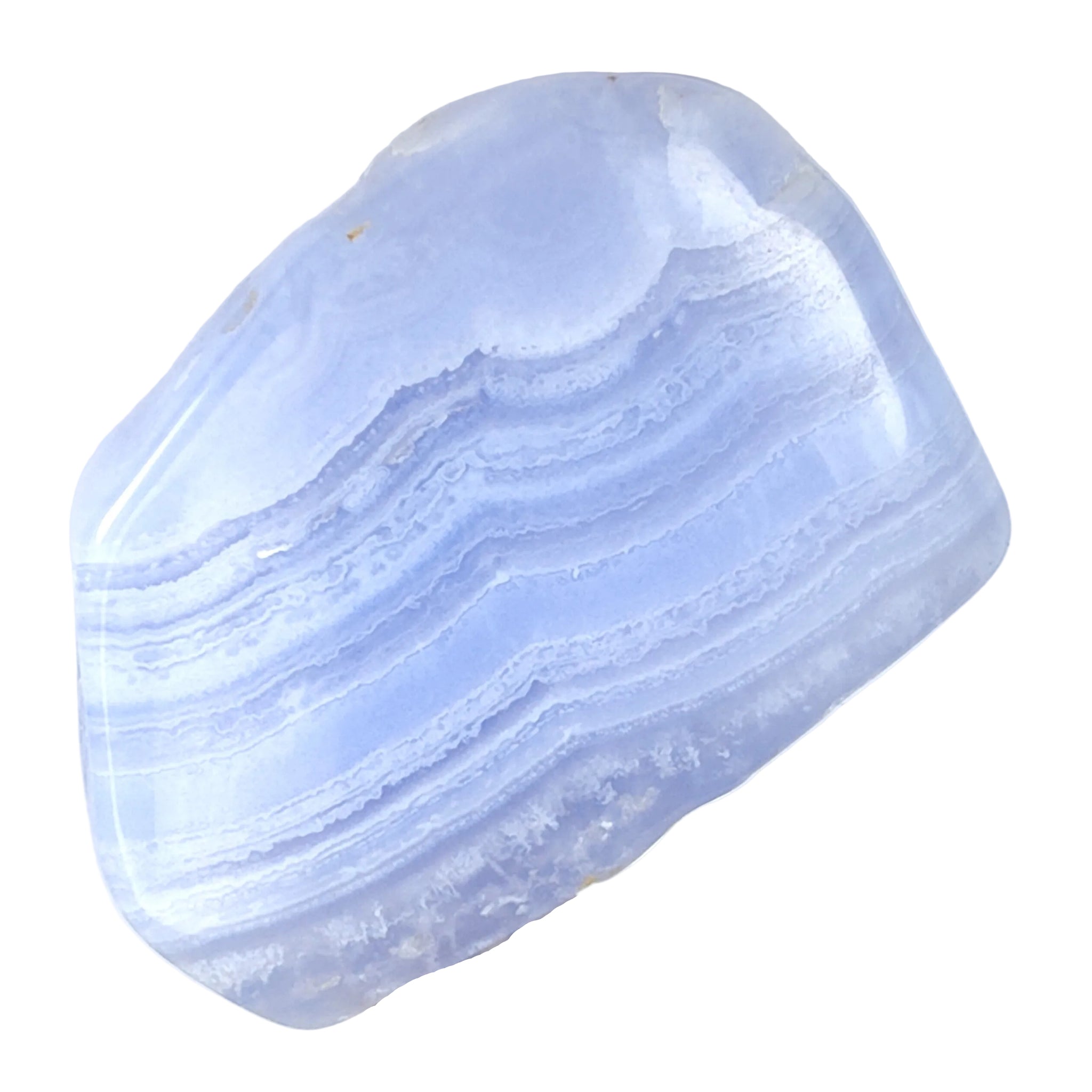 Blue Lace Agate is a spiritually powerful stone that promotes grounding and enlightenment. This beautiful blue stone can provide comfort and support during times of loneliness or desperation. Often referred to as "celestial" due to its resemblance to a perfect summer sky.