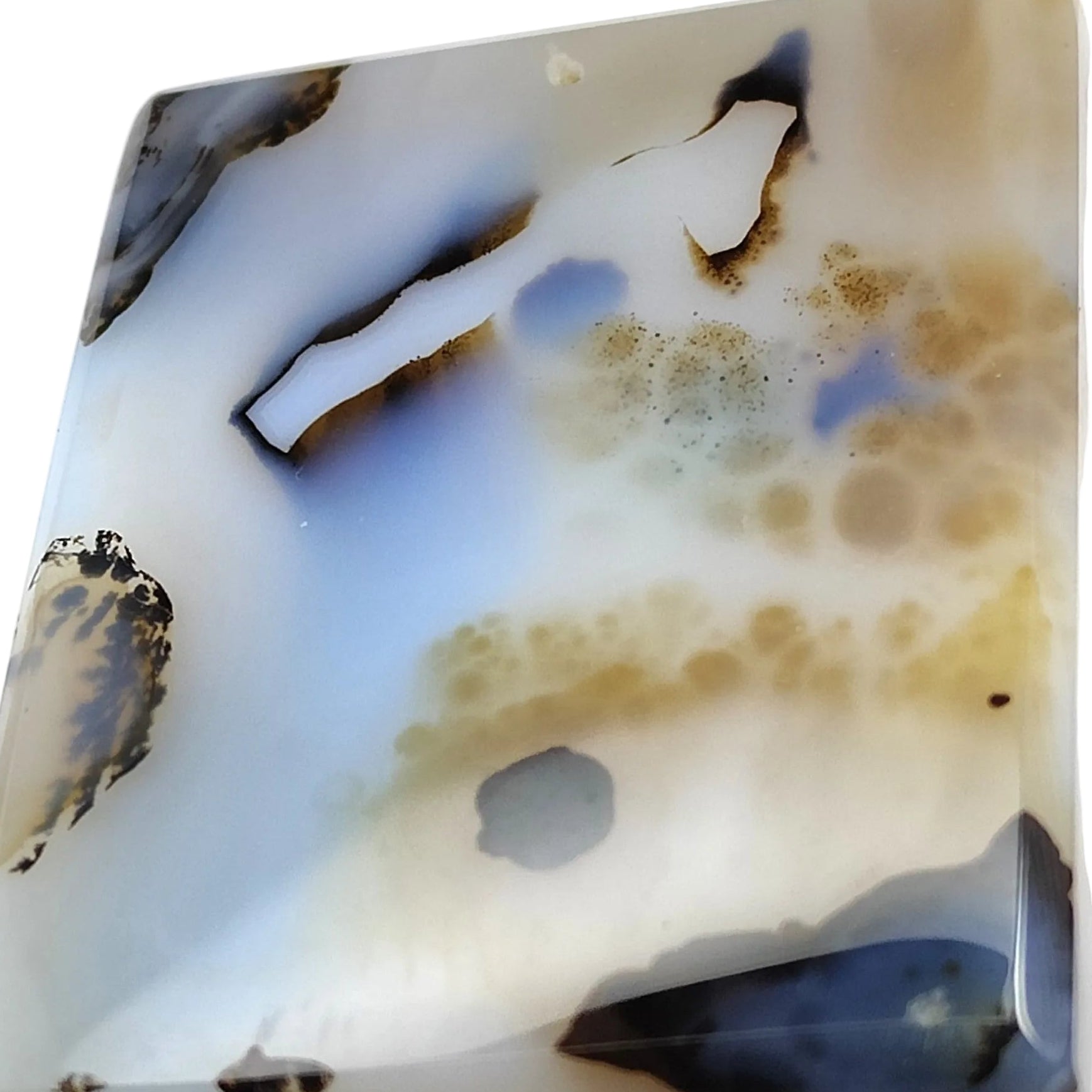 Dendritic Agate is a stone known for its creamy white base and intricate, tree-like inclusions, symbolising growth, abundance, and stability. Believed to promote patience, grounding, and emotional healing, it is often associated with fostering connection to nature and supporting personal development. With its calming and nurturing energy, Dendritic Agate is valued for encouraging inner peace and a deeper sense of harmony.